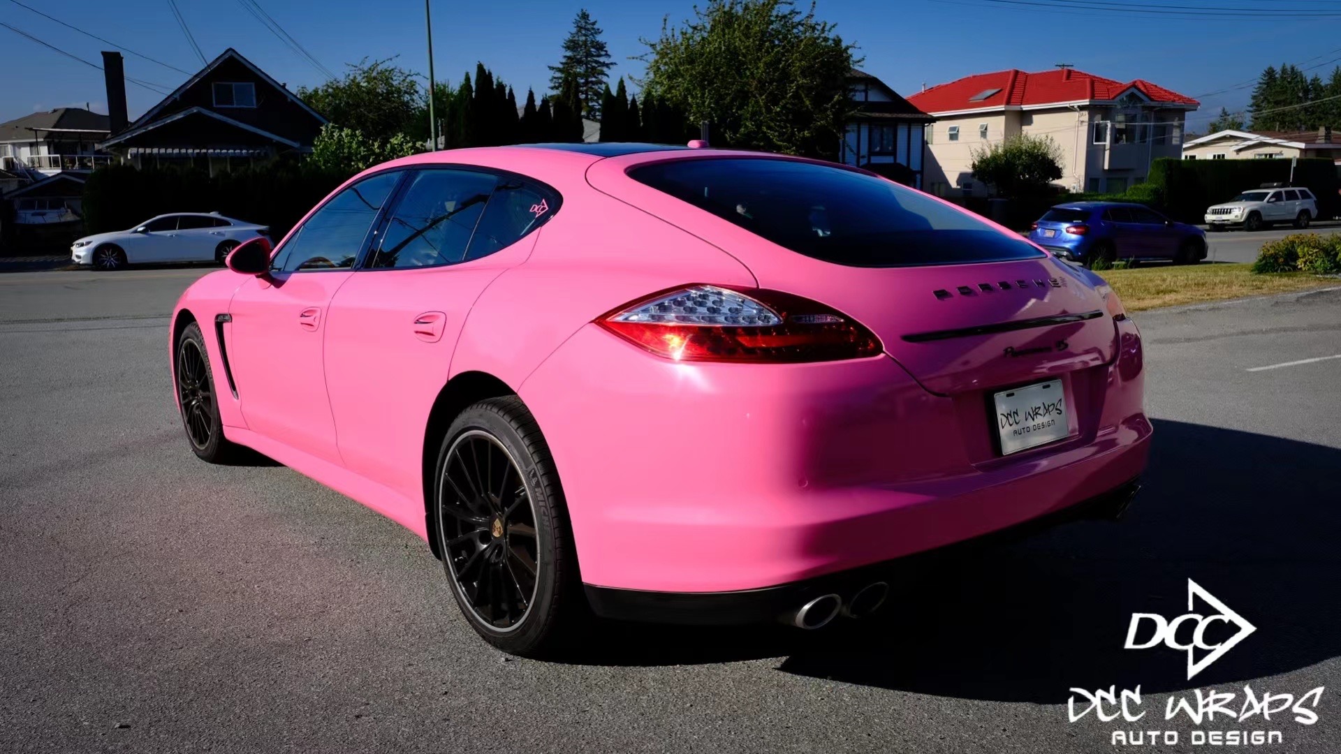 保时捷 帕拉梅拉4s贴亮粉色