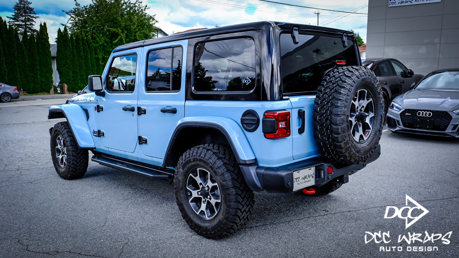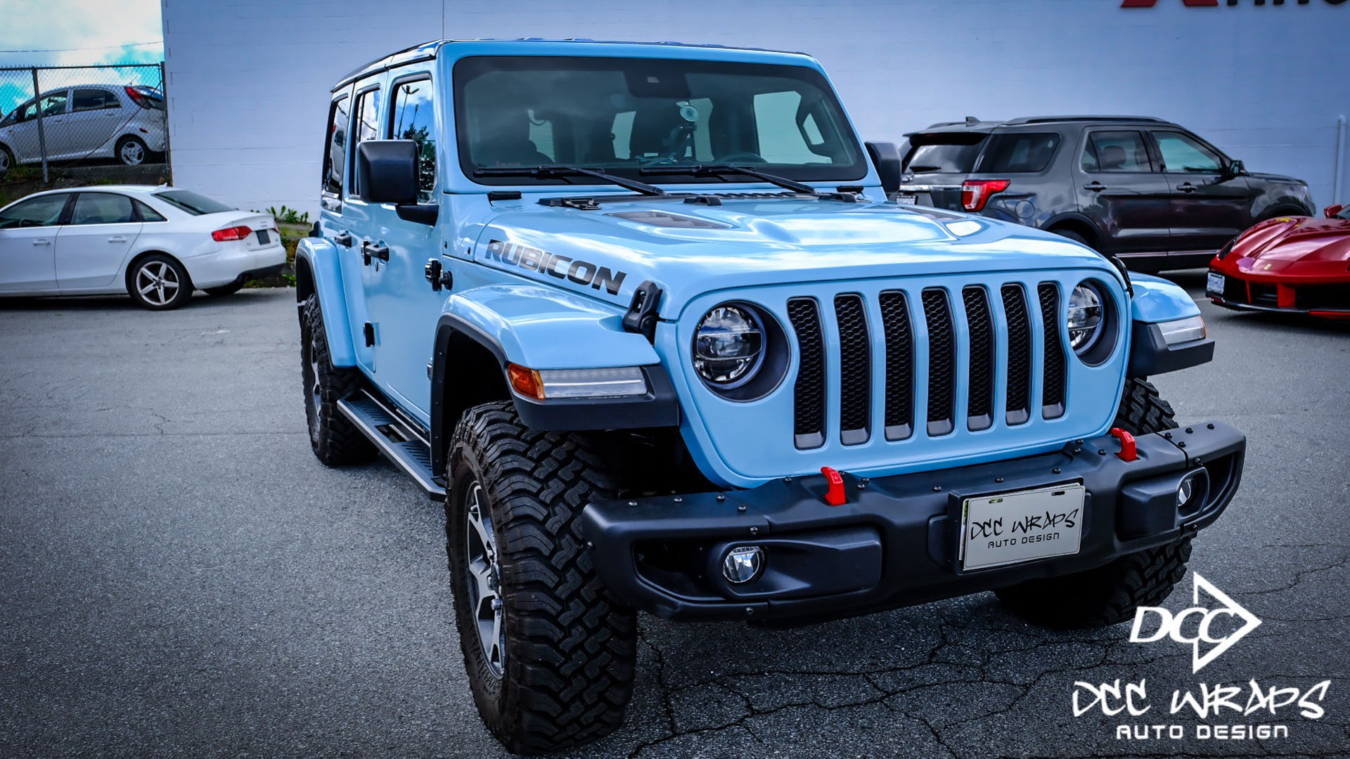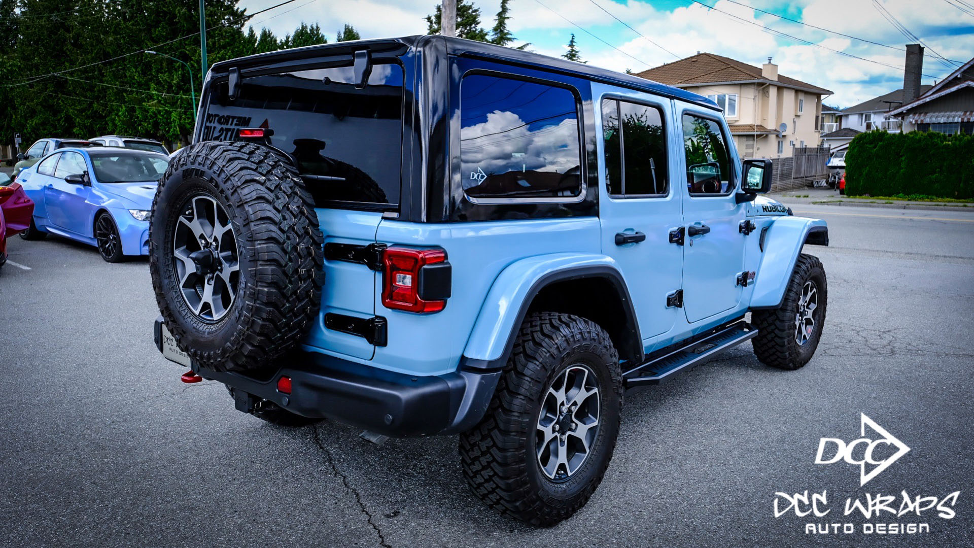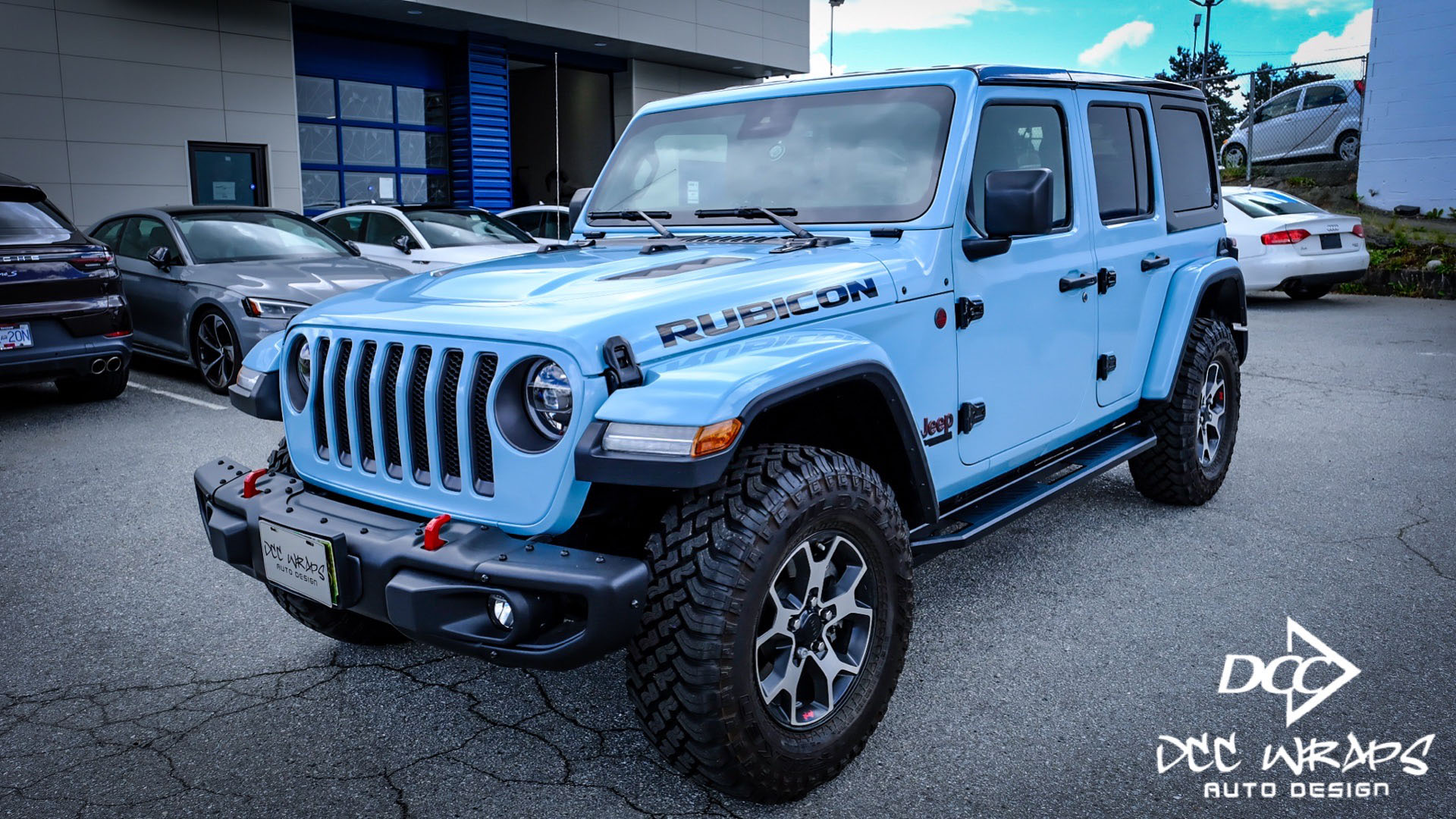 Jeep Rubicon wrapped gloss see breeze blue/gloss black + ceramic coating